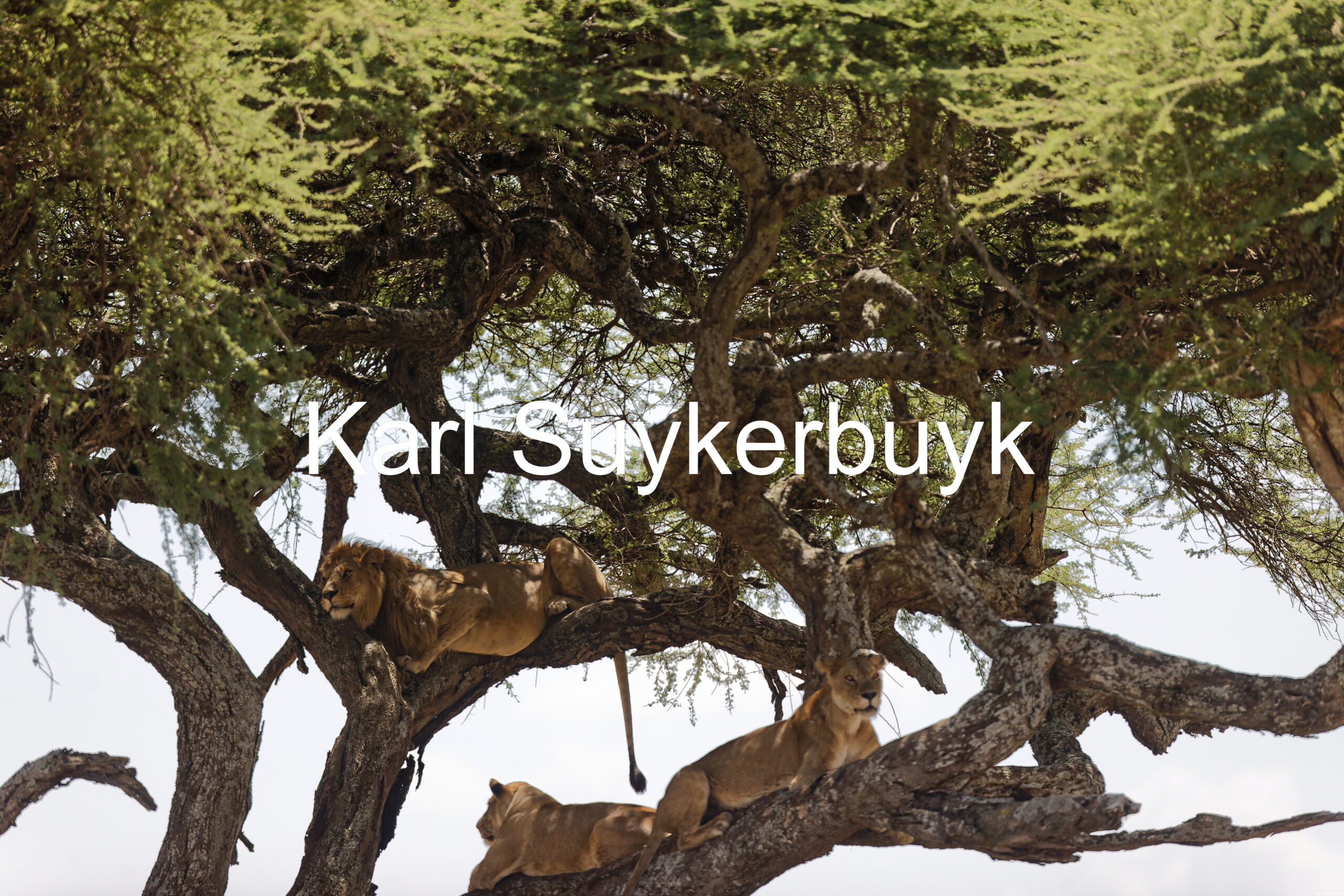 A picture of some lions in a tree in the Serengeti.
