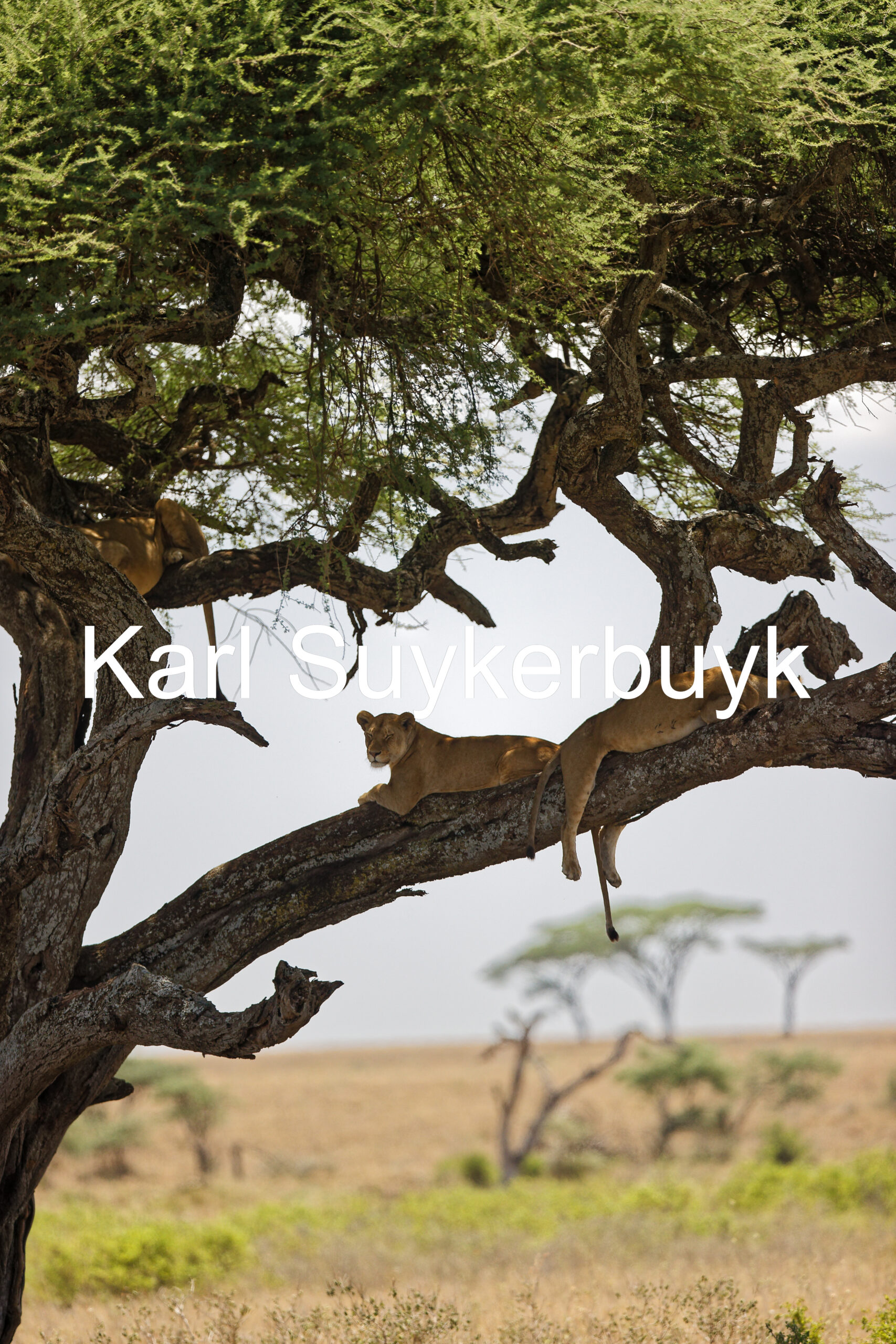 A picture of some lions in a tree in the Serengeti.