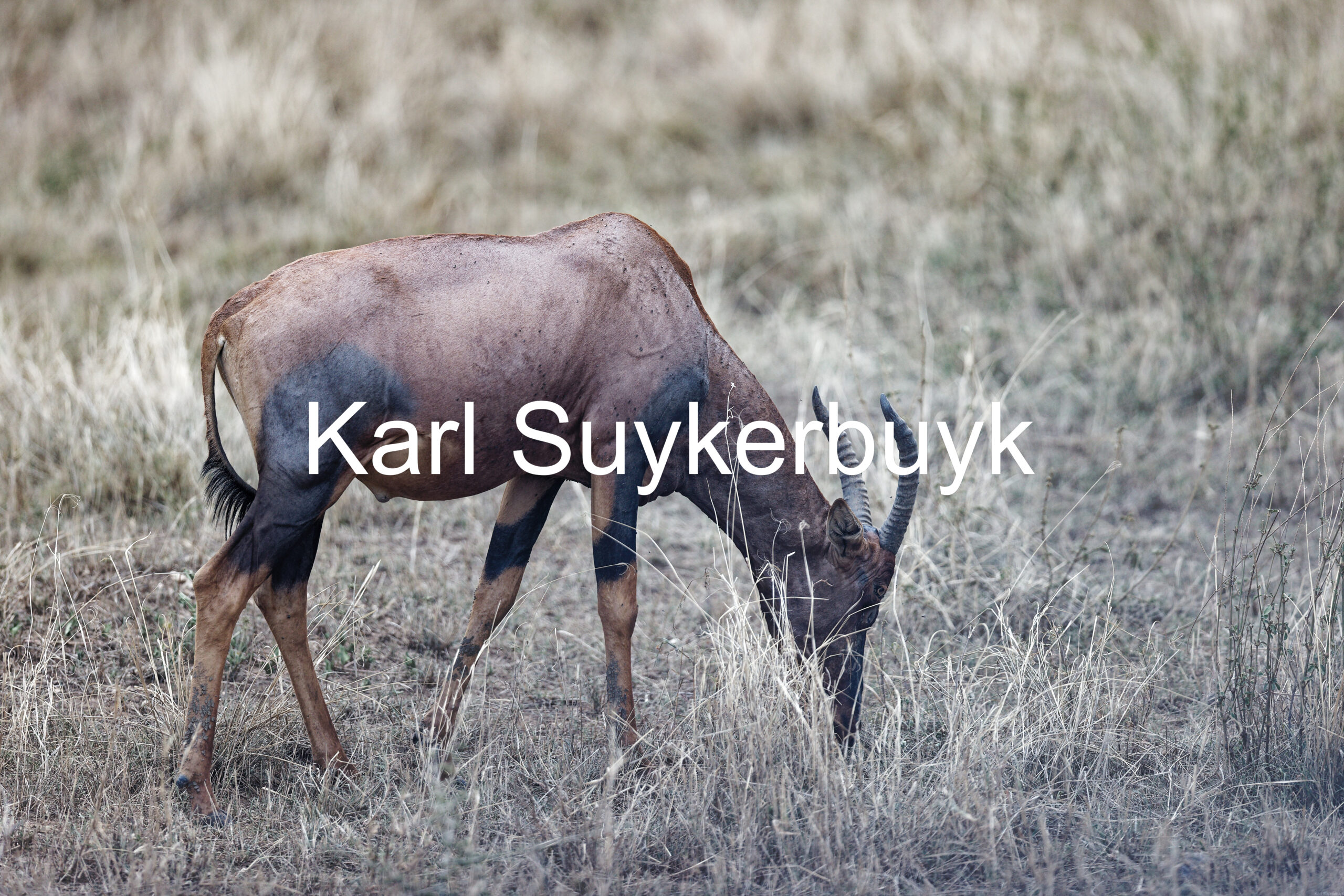 A picture of The Painted Antelope: A Topi Grazing.